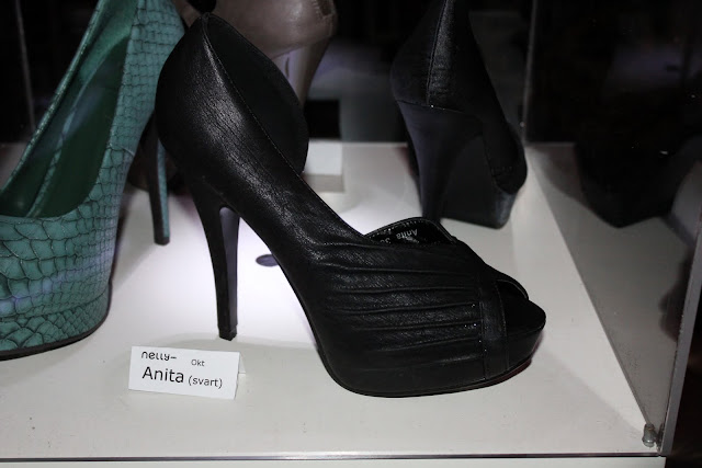 We had high expectations for Nelly High Heels Party, that´s on a tour around in Norway. Naive like any other fashion girl, I pictured gorgeous shoes in huge piles. In grand portions along the wall. So when we eventually got in, we were a little disappointed over the selection. There were lots of nice chunky heels and boots, but most of them had sky high heels. We were hoping for more shoes, and preferably some under 8 centimeters high... Anyway, still some lovely shoes, and I found three favourites which you can see on my note in one of the pictures.
